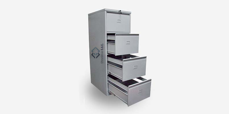 Modelos con 02, 03 y 04 gavetas:con chapa Botón, fichero para el nombre y manijas cromadas, llevan dentro de los cajones un marco soldado al cajón para archivos colgantes