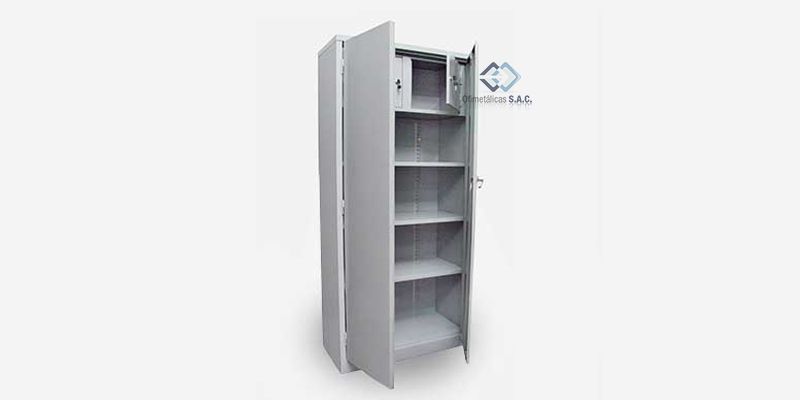 Armario simple con 04 anaqueles graduables con ganchos reforzados fabricados con matríz.