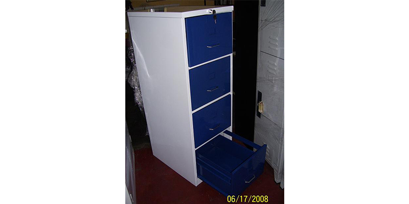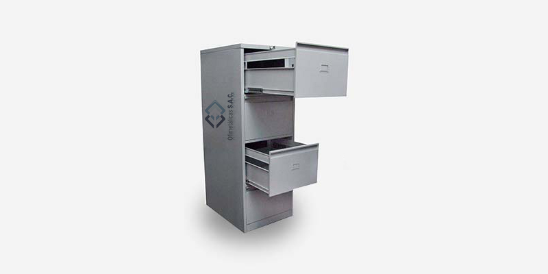 Modelos con 02, 03 y 04 gavetas:con chapa Botón, fichero para el nombre y manijas cromadas, llevan dentro de los cajones un marco soldado al cajón para archivos colgantes